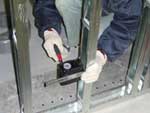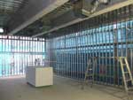 軽量鉄骨にて壁の下地工事が行なわれています。(写真左)