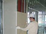 1Fの間仕切り壁は防音対策のために中空押出セメント板が使用されています。(写真右) |